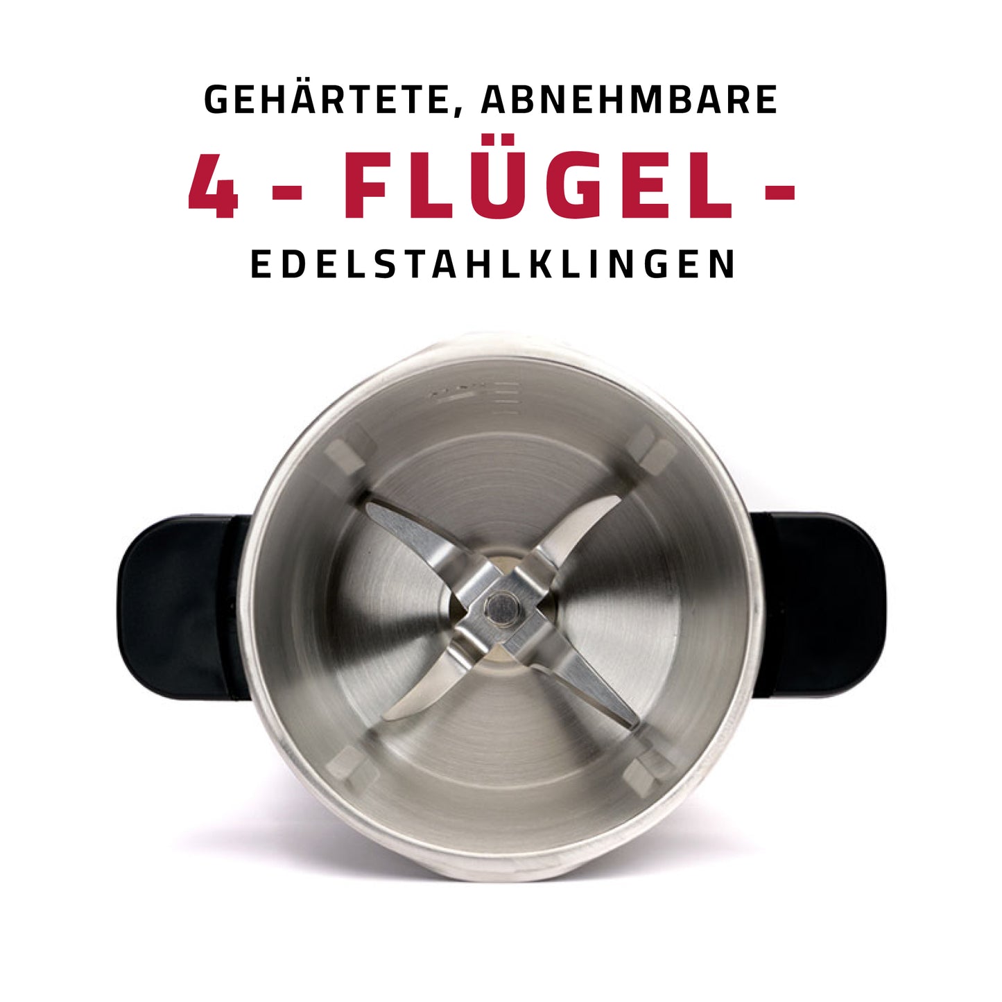 | Messen/Bladen: | Verharde, afneembare 4-vleugel roestvrijstalen messen | Ja |