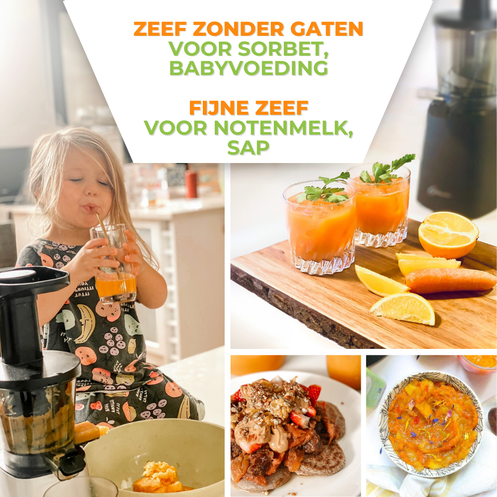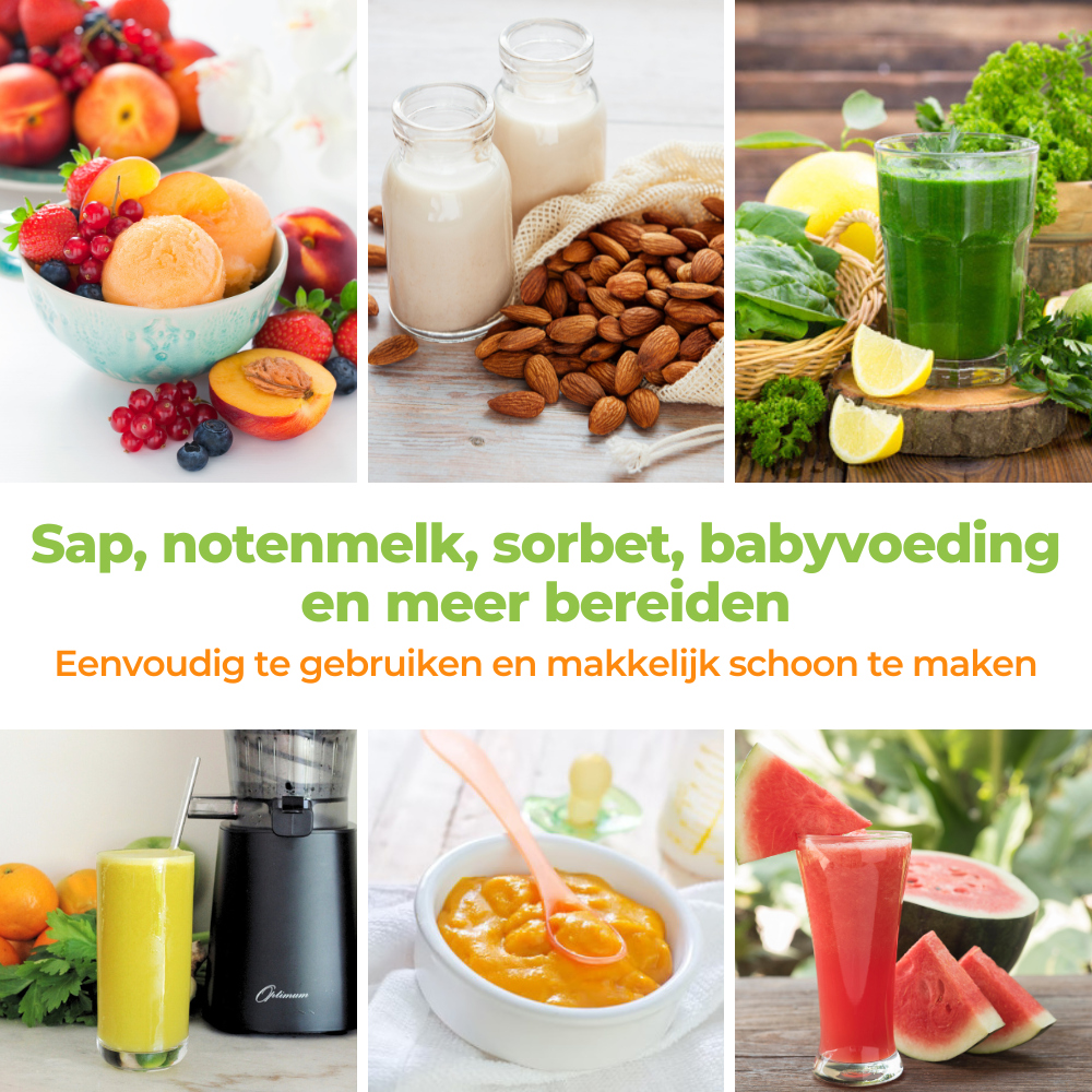 VEELZIJDIG: Geschikt voor het bereiden van sappen, sorbets, notenmelk, milkshakes, babyvoeding, notenboter en smoothies!
