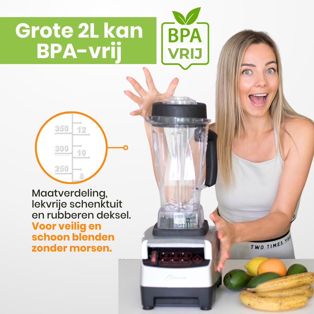 De Optimum 9200A is een krachtige blender die aan al uw eisen voldoet – en dat voor een fractie van de prijs van vergelijkbare apparaten zoals de Vitamix. Bekend om zijn prestaties en betrouwbaarheid, overtuigt de 9200A met een krachtige motor en precisiegeslepen messen die elke keer zorgen voor een gelijkmatig, romig resultaat. Of het nu smoothies, soepen, notenpasta of ijs is – deze mixer klaart elke klus moeiteloos. Dankzij variabele snelheidsregeling, pulse-functie en vooraf ingestelde programma's biedt hij maximale veelzijdigheid en comfort bij alle keukenwerkzaamheden. De robuuste afwerking en gebruiksvriendelijke bediening maken hem ideaal voor beginners en ervaren koks. Perfect voor gezondheidsbewuste huishoudens en iedereen die waarde hecht aan efficiëntie: de Optimum 9200A levert professionele resultaten – zonder de hoge prijs. Ervaar krachtige mixprestaties en geweldige waarde met de Optimum 9200A – en ontdek meer uitmuntende modellen in onze volledige mixercollectie.