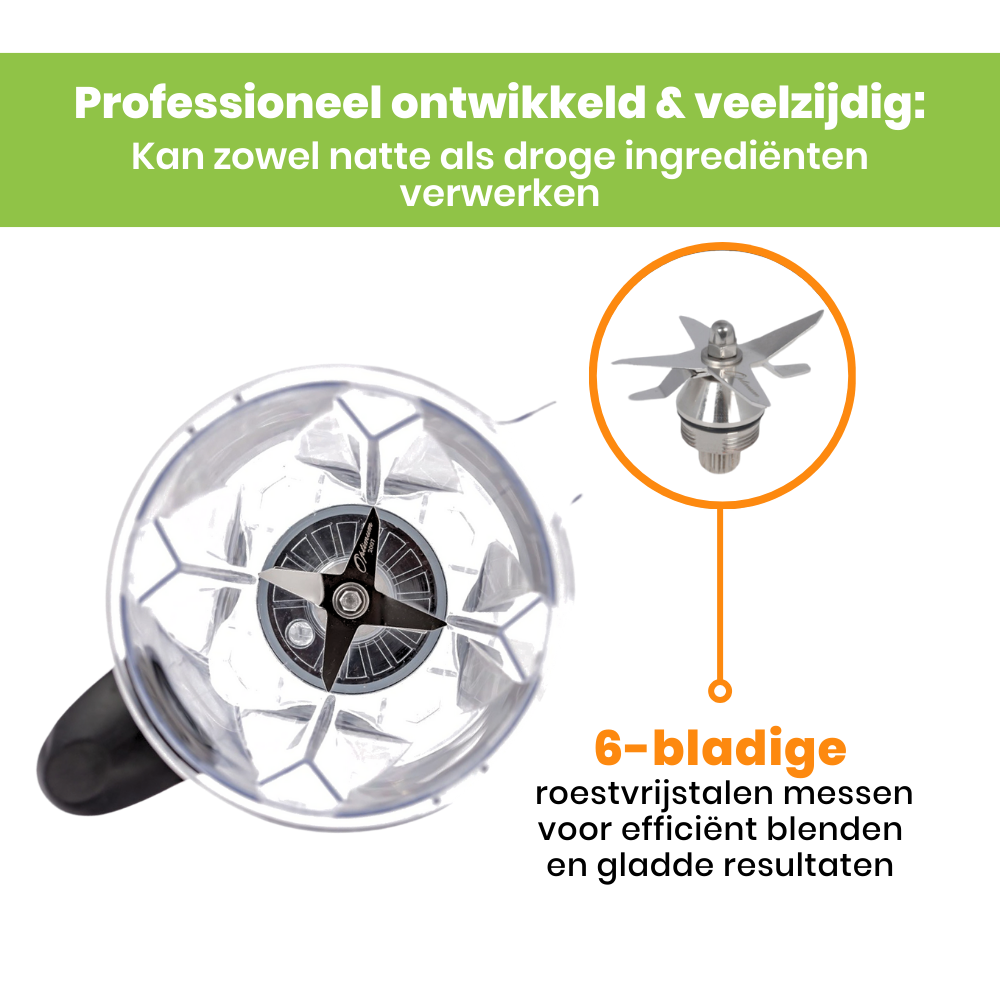 - Geavanceerde 2-in-1 roestvrijstalen snijmesopstelling (6-messen) - Maalt ijs, noten en fruit in seconden