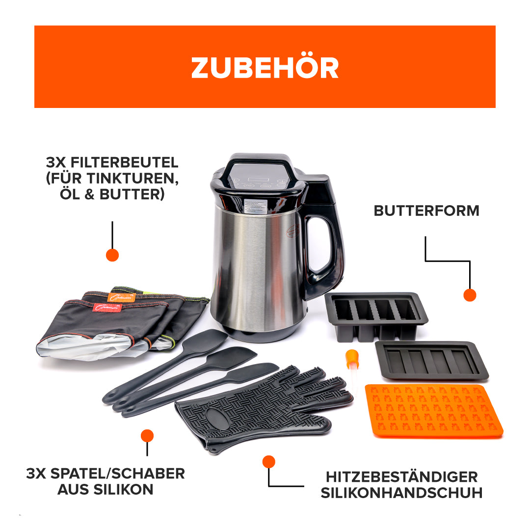 | Accessoires: | 2l BPA-vrije mengbeker met deksel en dop, stamper, spatel, notenmelkzak, receptenboek van 100+ pagina's, gebruiksaanwijzing | 2l BPA-vrije mengbeker met deksel en dop, stamper (middelgroot), gebruiksaanwijzing, receptenboek |