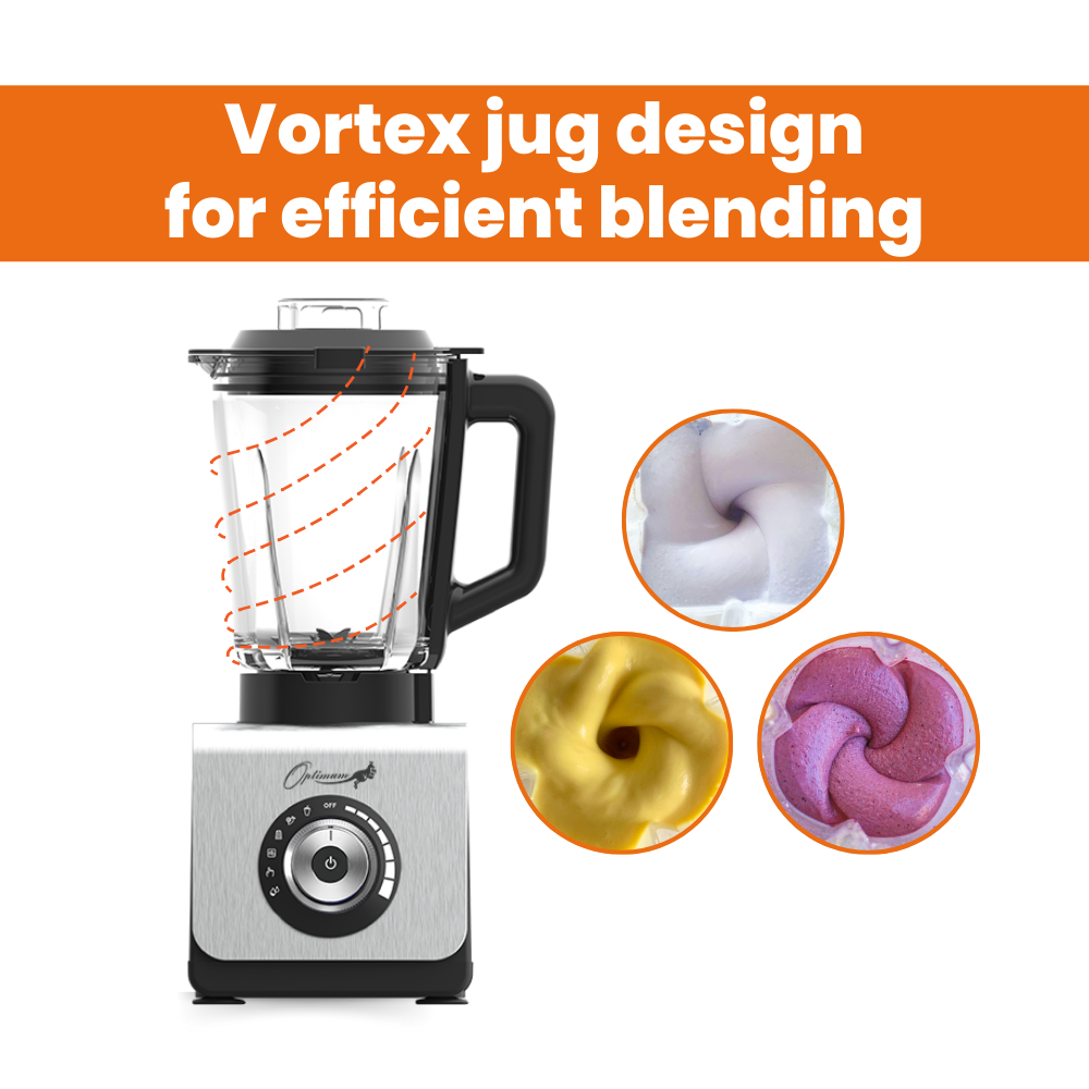 Vortexkan OntwerpenDompel uzelf onder in uitzonderlijke mengprestaties met het innovatieve glazen vortexkan ontwerp van de Optimum 9400 Essential, dat ingrediënten naar de messen beweegt. Dit proces snijdt en mengt ingrediënten naadloos voor een gladde consistentie, elke keer weer. | |